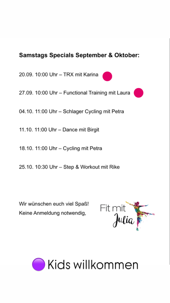 Wir freuen uns, euch begrüßen zu dürfen! Alle Kurse findet ihr im Kursplan.