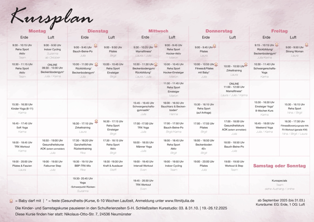 Die Kids und Wochenendkurse (Sa/So) pausieren in den Ferien SH komplett.